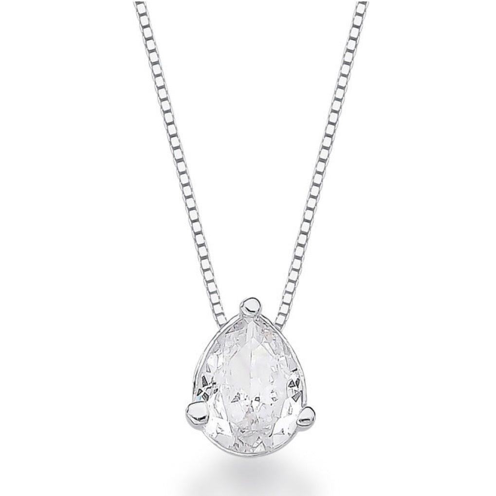 Especificações: Colar em Prata de lei 925, com pingente ponto de luz em formato de gota (zirconia tam 5x7) na cor cristal. Terminal cravejado com zirconias cristais.