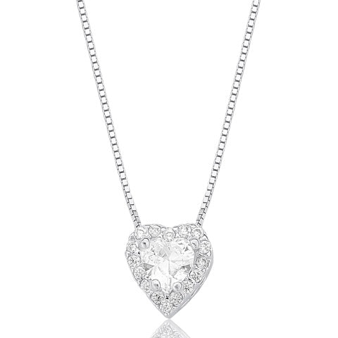 Especificações: Colar coração em Prata de lei 925, cravejado com zircônias de 1.25 milímetros na cor cristal(16 pedras) e uma máxi zircônia na cor vermelha de 5x5 milímetros.