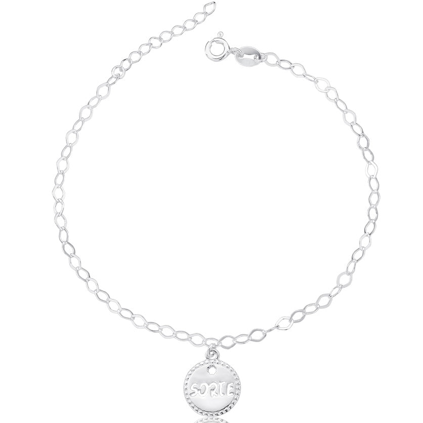 Especificações: Pulseira em prata de Lei 925, maleável, com pingente Sorte detalhado e acabamento liso polido. Fecho: Estilo boia.